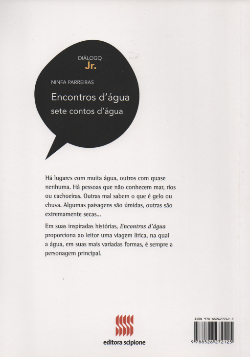 Contos envolventes que incentivam a empatia e a solidariedade entre as pessoas e a natureza. Tão fundamental para a vida é a água e aqui há um engajamento dos protagonistas com as diversas formas em que ela se apresenta na natureza. Ilustrado por Fabiana Salomão, este livro, que é o best seller de Ninfa Parreiras, apresenta sete aventuras com crianças e estados diferentes da água (descoberta do gelo, da neve, do rio, do mar, da neblina, do rio…).