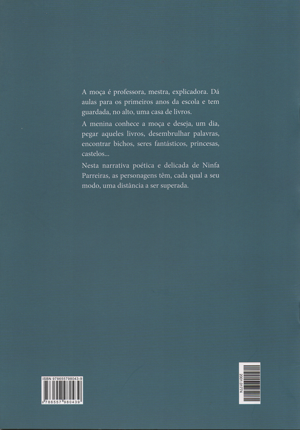 O mundo adulto versus o mundo da infância: como a fantasia pode dar conta da falta e das incompletudes! Ilustrações líricas de Luiz Maia acompanham a narrativa que envolve uma professora e uma criança. A professora vivia envolvida com seus afazeres e a criança com seus sonhos e histórias dos livros. Silêncios e ausências acompanham o ritmo da imaginação.