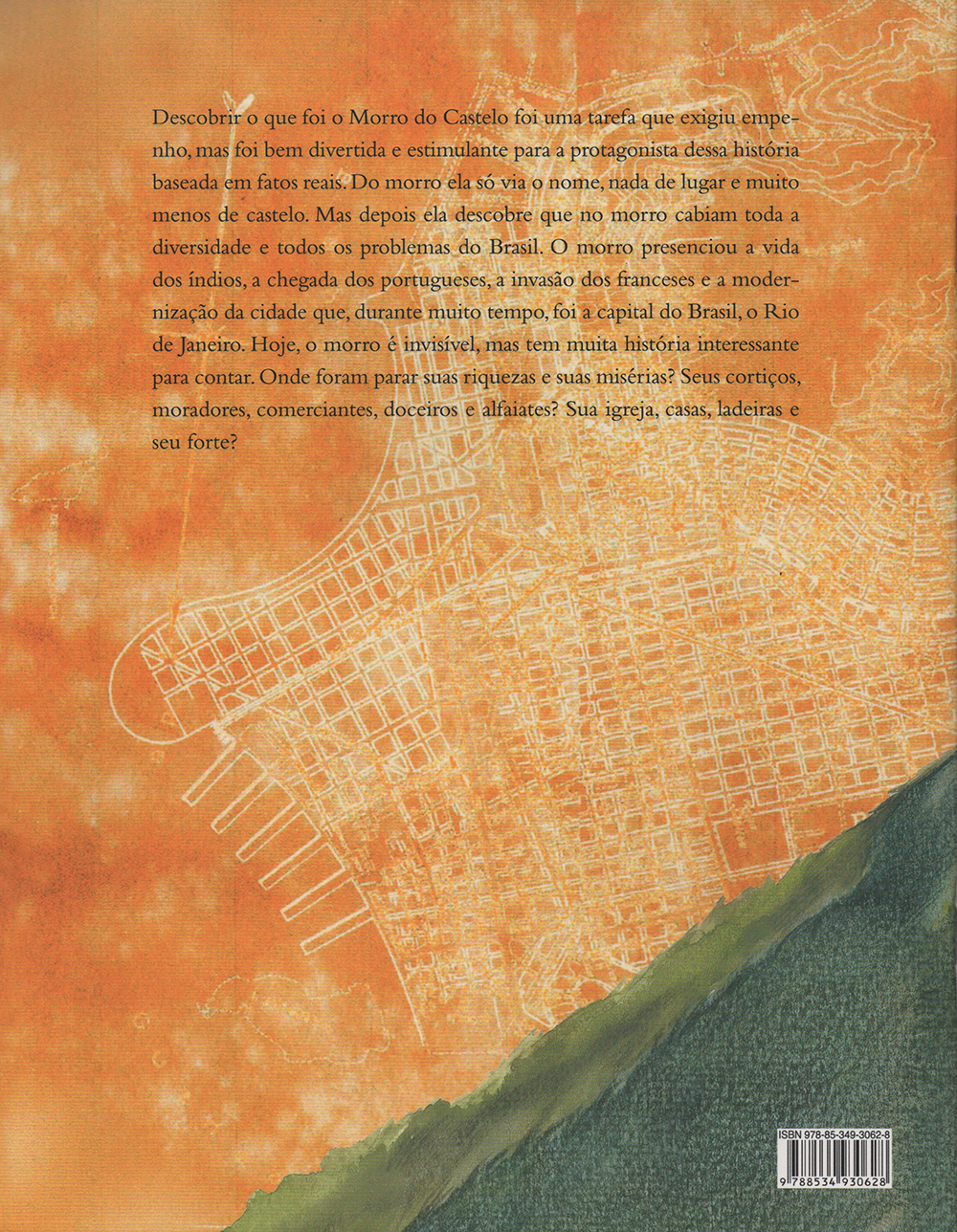 O Morro do Castelo foi um acidente geográfico facilmente avistado na entrada da Baía de Guanabara, na região central da cidade do Rio de Janeiro. Foi demolido e a autora resgata histórias e memórias desse Morro que agora virou uma lembrança. Ilustrações de Robson Araújo ora realistas, ora fantasiosas, acompanham a narrativa envolvente.